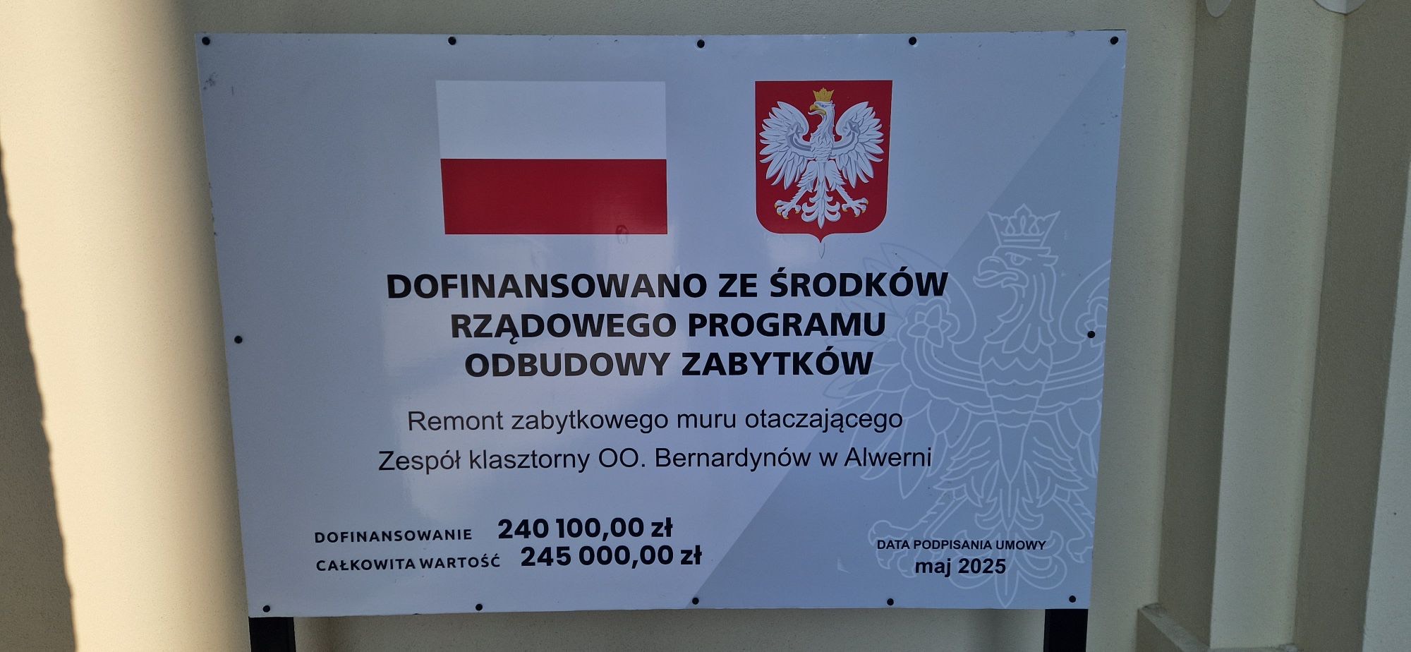Remont zabytkowego muru otaczającego Zespół Klasztorny OO. Bernardynów w Alwerni. Dofinansowano ze Środków Rządowego Programu Odbudowy Zabytków.